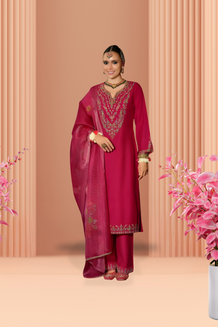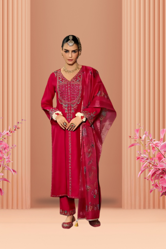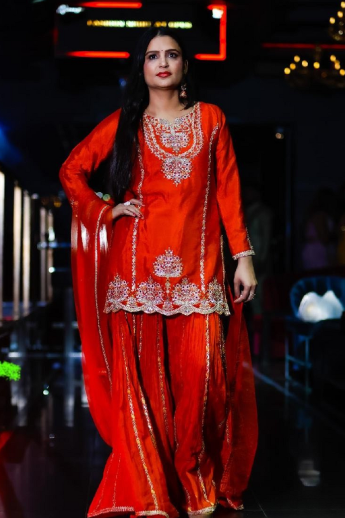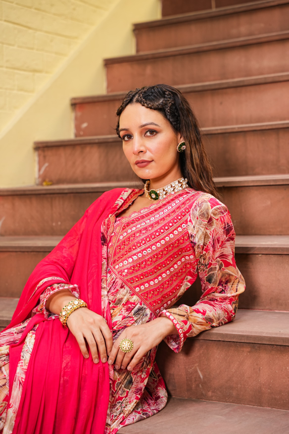 Red Women Ethnic Motifs Printed Kurta with Palazzo