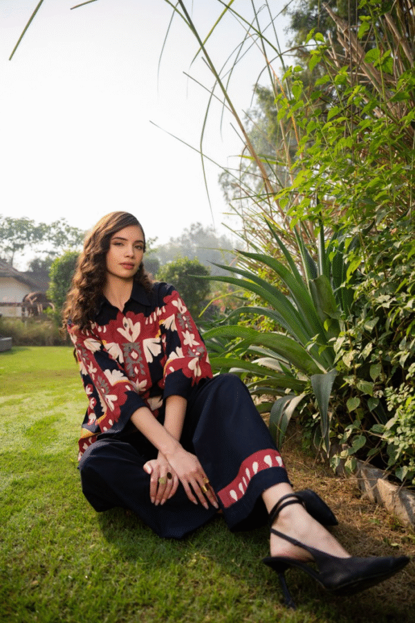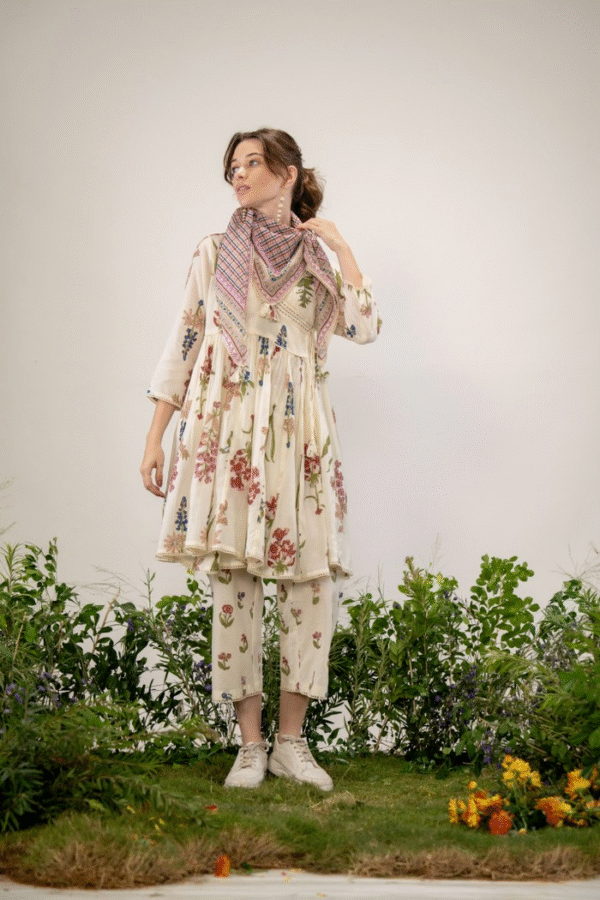 Lime Green Petals Cotton A Line Kurta Palazzo Set
