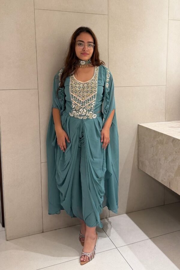 Ready to wear dress with hand embellished cape