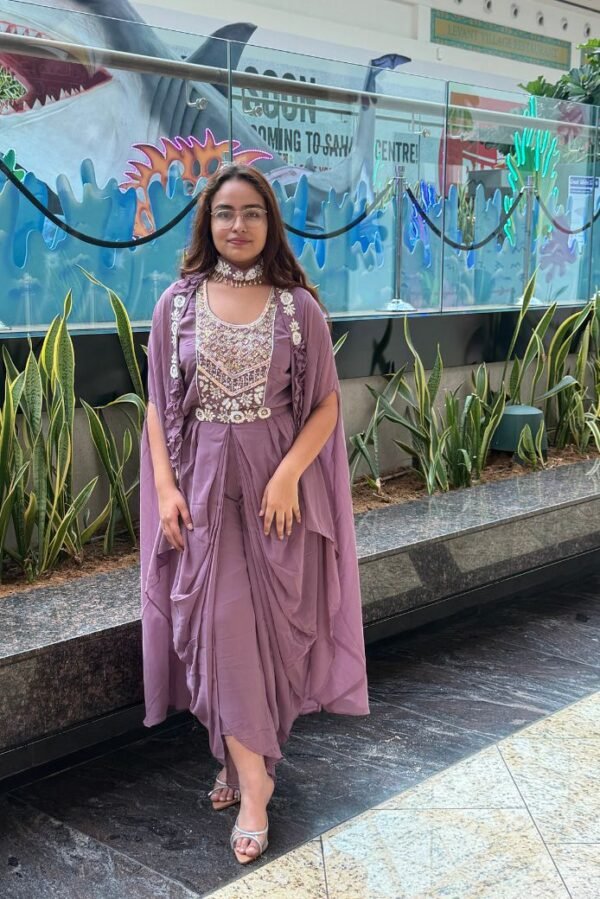 Ready to wear dress with hand embellished cape